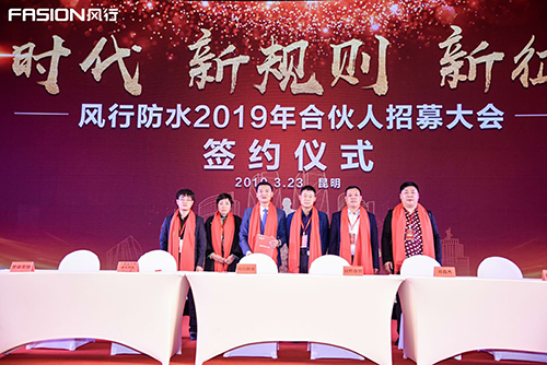 會上,風(fēng)行防水與10家合伙人達成合作共識,進行了現(xiàn)場簽約。