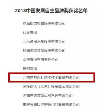 日前,由中國發(fā)展網(wǎng)主辦、中國發(fā)展研究院承辦的第四屆“發(fā)展中國”年度盛典在京舉行。盛典上頒布了包括十大改革創(chuàng)新人物在內(nèi)的多個獎項,東方雨虹與格力電器、雙星集團等企業(yè)一道榮獲2018中國發(fā)展自主品牌獎。