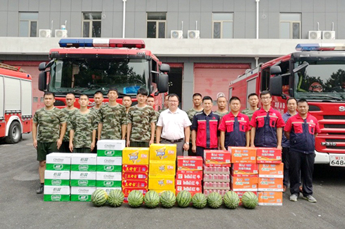 8月1日上午,東方雨虹北京生產(chǎn)基地副廠長于杰一行來到楊鎮(zhèn)消防中隊慰問消防官兵,并送上清涼解暑慰問品。