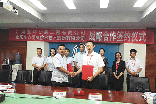 6月22-23日,甘肅五環(huán)公路工程有限公司黨支部書記、董事長崔建文,總經(jīng)理高新民一行13人考察東方雨虹。東方雨虹集團(tuán)副總裁王文萍、市場營銷總監(jiān)徐萌、總裁辦主任齊芬、體系總監(jiān)謝傳英、公路交通事業(yè)部經(jīng)理田野等接待了考察團(tuán)。