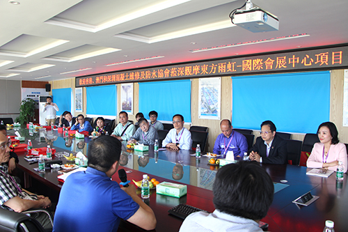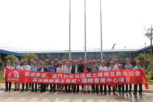 4月11日下午,香港、澳門和深圳混凝土維修及防水協(xié)會(huì)一行30余位專家觀摩東方雨虹國(guó)際會(huì)展中心項(xiàng)目,深圳東方雨虹副總經(jīng)理盧了君熱情接待了觀摩團(tuán)。