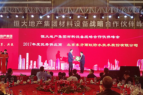 東方雨虹榮獲恒大地產(chǎn)集團“2017年度優(yōu)秀供應商”稱號