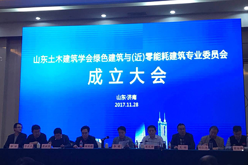 11月28日,山東土木建筑學會綠色建筑與(近)零能耗建筑專業(yè)委員會(以下簡稱專委會)成立大會在山東濟南召開。江蘇臥牛山公司作為委員單位受邀參加此次會議。會議由山東土木建筑學會常務副秘書長崔洪濤先生主持。