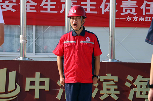 8月7日早8:00,在東方雨虹萊西生產基地內,伴隨著嘹亮的國歌、東方雨虹司歌以及升旗儀式,以全面落實企業安全生產主體責任為主題的萊西生產基地安全月活動正式開啟。
