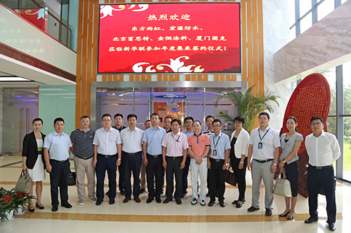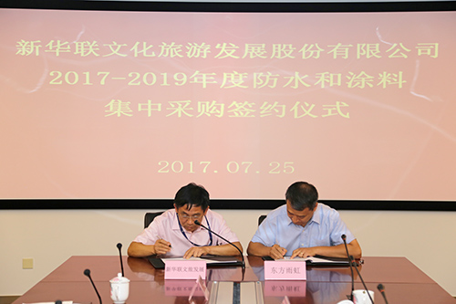 7月25日,新華聯(lián)文化旅游發(fā)展股份有限公司2017-2019年度防水和涂料集中采購(gòu)簽約儀式在北京臺(tái)湖新華聯(lián)總部召開(kāi),包括東方雨虹在內(nèi)的五家涂料和防水供應(yīng)商代表受邀參加。新華聯(lián)集采中心總監(jiān)彭建奇主持儀式,東方雨虹集團(tuán)副總裁張洪濤參加簽約儀式并發(fā)言。