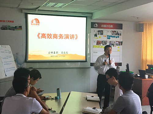 5月25日上午,為了提升員工公共表達(dá)能力,強(qiáng)化商務(wù)溝通實(shí)踐技巧,上海東方雨虹舉辦“公共演講能力提升”學(xué)習(xí)會(huì),來(lái)自上海公司各部門(mén)近30名員工到場(chǎng)參加了本次活動(dòng)。 語(yǔ)言是人們溝通的重要工具。活動(dòng)一開(kāi)始,上海東方雨虹市場(chǎng)總監(jiān)燕冰就鼓勵(lì)大家積極參與本次培訓(xùn),抓住機(jī)會(huì)提升自我表現(xiàn)能力,講到:“通過(guò)本次培訓(xùn),讓各位在工作過(guò)程中可以更好的了解如何與客戶(hù)進(jìn)行有效的溝通,讓客戶(hù)認(rèn)可、滿(mǎn)意,進(jìn)而推動(dòng)各個(gè)項(xiàng)目的推進(jìn)”。