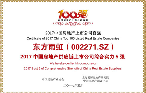 5月25日,“2017中國房地產(chǎn)上市公司測(cè)評(píng)成果發(fā)布會(huì)暨上市房企高峰論壇”在香港舉行。會(huì)上,中國房地產(chǎn)業(yè)協(xié)會(huì)、中國房地產(chǎn)測(cè)評(píng)中心發(fā)布了《2017中國房地產(chǎn)上市公司測(cè)評(píng)研究報(bào)告》。根據(jù)報(bào)告,東方雨虹獲評(píng)“2017中國房地產(chǎn)供應(yīng)鏈上市公司綜合實(shí)力5強(qiáng)”。