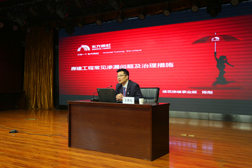 4月14日,防水施工與防滲漏技術(shù)及“智慧工地”知識講座在湖南長沙五礦二十三冶建設(shè)集團(tuán)總部召開,本次會議由五礦二十三冶建設(shè)集團(tuán)主辦,東方雨虹協(xié)辦。五礦二十三冶建設(shè)集團(tuán)副總經(jīng)理吳建國、技術(shù)中心總經(jīng)理路惠明攜二十三冶總包單位、設(shè)計(jì)單位代表出席會議,東方雨虹工渠(中國)修繕業(yè)務(wù)部南方區(qū)副總工程師陳剛、技術(shù)服務(wù)部湖南副總工程師艾淇涌進(jìn)行課程分享。