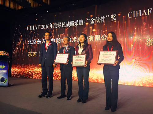 東方雨虹秉承“為人類為社會創(chuàng)造持久安全的環(huán)境”的企業(yè)使命,著力構(gòu)建雨虹綠色發(fā)展體系,走可持續(xù)發(fā)展道路,建立了以產(chǎn)品設(shè)計開發(fā)、產(chǎn)品生產(chǎn)過程、施工過程、辦公環(huán)境、生活環(huán)境為一體的綠色發(fā)展體系。此次斬獲“2016年度綠色采購戰(zhàn)略合作·金伙伴獎”離不開各知名企業(yè)的支持和信賴,東方雨虹將站在行業(yè)前端堅守理想,將綠色、健康的企業(yè)發(fā)展理念一如既往踐行下去。