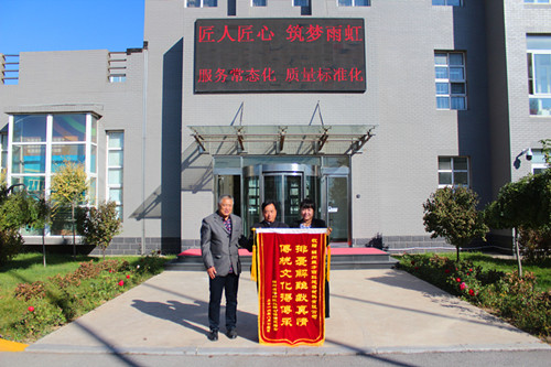 10月17日上午,錦州濱海新區杏山街道弘愿念佛堂屈銳成居士專程來到錦州東方雨虹,對東方雨虹為弘愿念佛堂防水設計改造提供的免費技術服務和工程材料表示感謝,并贈送了書寫著“傳統文化得傳承,排憂解難獻真情”的錦旗。東方雨虹錦州生產基地副廠長曹雪熱情接待了來訪人員。