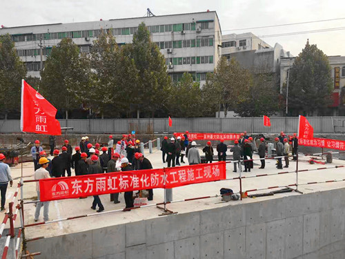 10月16日,焦作市人民防空辦公室組織各區縣人防辦相關領導、在建和待建人防工程項目負責人、具有人防功能的樓盤相關責任方代表共計170余人,觀摩東方雨虹武陟縣人防項目標準化施工工地。   觀摩團對東方雨虹復合式防水構造方案和機械化施工工藝進行現場考察,并就現場防水施工及材料與東方雨虹進行了深入交流,對東方雨虹的標準化施工給予了高度評價。