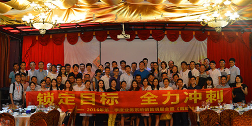 7月30日,以“鎖定目標,全力沖刺”為主題的廣東東方雨虹2016年第二季度業(yè)務(wù)系統(tǒng)銷售明星會暨《雨虹知多少》發(fā)布會在涵天酒店九樓舉行。廣東東方雨虹董事長楊浩成、常務(wù)副總經(jīng)理孫福琴、總經(jīng)理助理張舜苗、總經(jīng)理助理王超以及業(yè)務(wù)系統(tǒng)、職能系統(tǒng)共計70多名員工出席了此次會議。