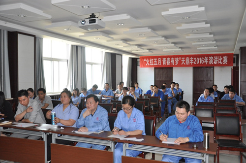 為了加強企業(yè)文化建設(shè),豐富職工的文化生活,2016年5月4日,天鼎豐公司舉行了一場以 “青春 夢想”為主題的演講比賽初賽,來自各部門、車間的29名員工參加了比賽。天鼎豐董事長聶松林為每位參賽選手的演講做了點評。 比賽中,29名參賽選手把“企業(yè)夢”融入“個人夢”,結(jié)合自己的工作與生活及身邊的感人事例,以激情昂揚的歌頌,情深意切的講述,鏗鏘有力的語言,表達了為夢想奮斗的決心,抒發(fā)了建功青春的勇氣和愛企榮企的熾熱情懷,充分展示了公司青年員工飽滿的精神面貌和昂揚向上的工作激情。《我的青春我做主》、《我拿青春換夢想》、《“改變”讓夢想插上翅膀》等演講,更是感情豐富,思考深入,贏得臺下觀眾熱烈的掌聲。