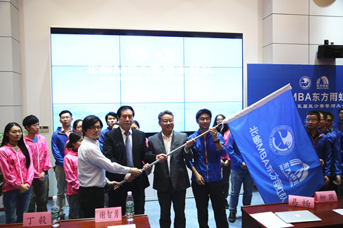 會上,舉行了授旗儀式及北郵MBA東方雨虹隊全體隊員集體宣誓。