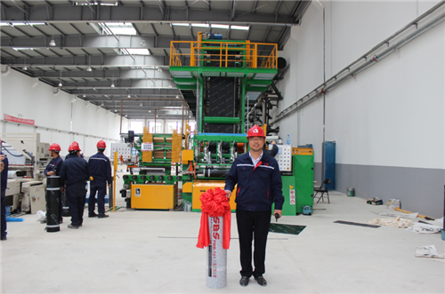咸陽(yáng)生產(chǎn)基地廠長(zhǎng)劉曉俊和生產(chǎn)的第一卷卷材合影