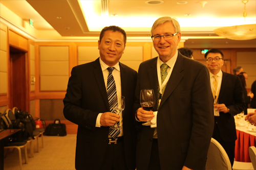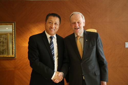 東方雨虹防水集團總裁劉斌(左)與加拿大前總理克雷蒂安(右)