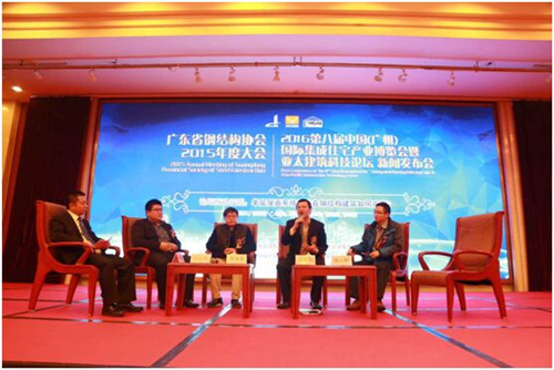 1月14日,廣東省鋼結(jié)構(gòu)協(xié)會在廣州召開“2015年廣東省鋼結(jié)構(gòu)協(xié)會年度大會、2016第八屆中國(廣州)國際集成住宅產(chǎn)業(yè)博覽會暨亞太建筑科技論壇新聞發(fā)布會”,廣東東方雨虹防水工程有限公司應(yīng)邀出席此次會議。 會議伊始,廣東鋼結(jié)構(gòu)協(xié)會副理事長、華南理工大學(xué)教授蔣正榮先生和廣東鴻威國際會展集團總裁王登云先生代表主辦方致歡迎辭。在 “2016第八屆中國(廣州)國際集成住宅產(chǎn)業(yè)博會暨亞太建筑科技論壇新聞發(fā)布會”論壇討論環(huán)節(jié)中,廣東東方雨虹總工程師周子鵠作為防水行業(yè)資深專家,針對“單層屋面系統(tǒng)技術(shù)在鋼結(jié)構(gòu)建筑如何應(yīng)用”等議題,與行業(yè)內(nèi)其他三位嘉賓共同探討、答疑解惑。作為首先發(fā)言的嘉賓,他對單層屋面系統(tǒng)技術(shù)做了深入淺出的介紹,并耐心地解答現(xiàn)場嘉賓提出的關(guān)于剛性防水與柔性防水的區(qū)別問題。