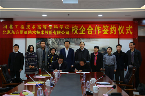 隨后,東方雨虹總裁向錦明表示,東方雨虹此次與校方建立合作,旨在強強聯合、資源共享、校企共贏。在我國從制造大國轉變為制造強國的宏觀背景下,東方雨虹也亟需一批專業合格、品學兼優、吃苦耐勞的專業技術施工及管理人才,與河北水利電力學院(現河北工程技術高等專科學校)的合作,不僅能夠滿足東方雨虹對于人才的需要,也將憑借東方雨虹在防水行業的影響力,為學校人才教育與未來的人才就業推波助瀾。