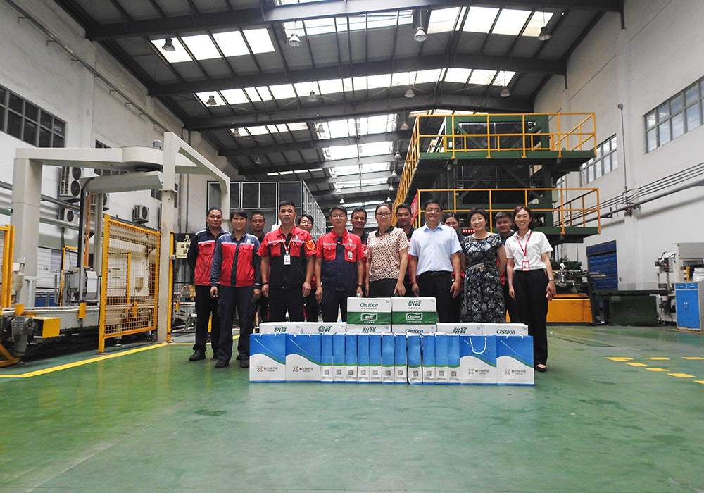 8月12日下午,江蘇省新沂市開發區黨群辦金主任一行慰問徐州臥牛山生產基地,為高溫天氣下堅守崗位的員工送上清涼與鼓勵。徐州生產基地廠長胡國雄接待。