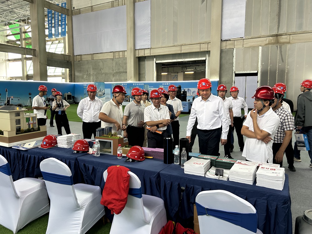 住房和城鄉建設部建筑市場監管司副司長廖玉平等近距離了解東方雨虹智能型卷材攤鋪車的現場實操,并對其在人機協作、提高工效等方面的實用性給予高度認可。