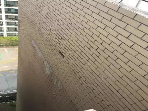 女兒墻與屋面結(jié)合處外墻面通常會出現(xiàn)一圈較大裂縫,雨水通過外墻面裂縫進(jìn)入墻體而滲入室內(nèi)。